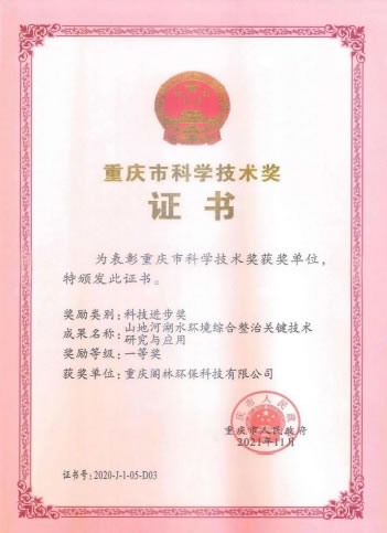 相應(yīng)技術(shù)獲得獲得2020年度重慶市科技進(jìn)步一等獎(jiǎng),形成了山地河湖水環(huán)境綜合整治理論與方法:山地流域健康水系統(tǒng)構(gòu)建、評(píng)估與管理方法、山地河流潭鏈功能增效梯度凈化技術(shù)達(dá)到國(guó)際領(lǐng)先水平,總體達(dá)到國(guó)際先進(jìn)水平。