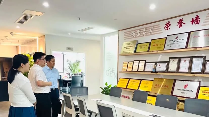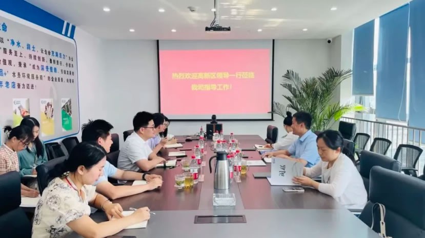 2023年7月18日,為切實(shí)增強(qiáng)科技工作者自豪感、獲得感、認(rèn)同感,重慶高新區(qū)黨工委委員、管委會(huì)副主任賈子文,重慶高新區(qū)科技創(chuàng)新局黨組成員王冬雨,重慶高新區(qū)科技創(chuàng)新局工作人員毛弘玲一行到訪區(qū)屬企業(yè),了解科技工作者工作情況,聽取相關(guān)需求及意見建議,為閣林環(huán)保發(fā)展建言獻(xiàn)策。重慶英才·創(chuàng)新創(chuàng)業(yè)領(lǐng)軍人才、公司總經(jīng)理李果博士,常務(wù)副總經(jīng)理孫通博士,市場(chǎng)負(fù)責(zé)人李鏡博士、人事行政負(fù)責(zé)人劉潔熱情接待賈主任一行。