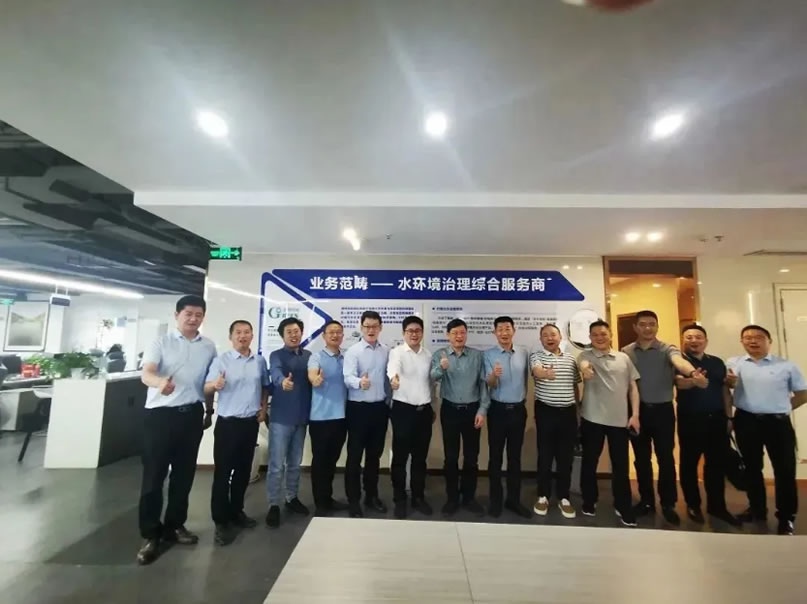 2023年4月15日-16日,岳陽市人民政府國有資產(chǎn)監(jiān)督管理委員會(huì)黨委書記、主任白鎖銘率隊(duì)到重慶閣林環(huán)保進(jìn)行調(diào)研,岳陽市國有資產(chǎn)經(jīng)營有限責(zé)任公司黨委書記、董事長李曉強(qiáng),岳陽市水務(wù)集團(tuán)有限公司黨委書記、董事長李宇宙,岳陽市人民政府國有資產(chǎn)監(jiān)督管理委員會(huì)企業(yè)改革發(fā)展科科長方鵬,岳陽自貿(mào)片區(qū)管委會(huì)自貿(mào)產(chǎn)業(yè)部部長周勝,岳陽市國有資產(chǎn)經(jīng)營有限責(zé)任公司投資運(yùn)營部部長黃展翔,岳陽市水務(wù)集團(tuán)有限公司知水公司執(zhí)行董事劉強(qiáng)華陪同調(diào)研。