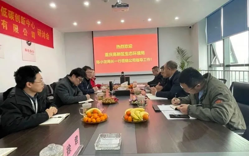 2023年2月23日,重慶高新區(qū)生態(tài)環(huán)境局局長陳小龍、副局長王以堯、科長張凱和李燦一行到訪公司指導工作。公司總經(jīng)理李果博士、常務副總經(jīng)理孫通博士、副總經(jīng)理董榮等出席會議。