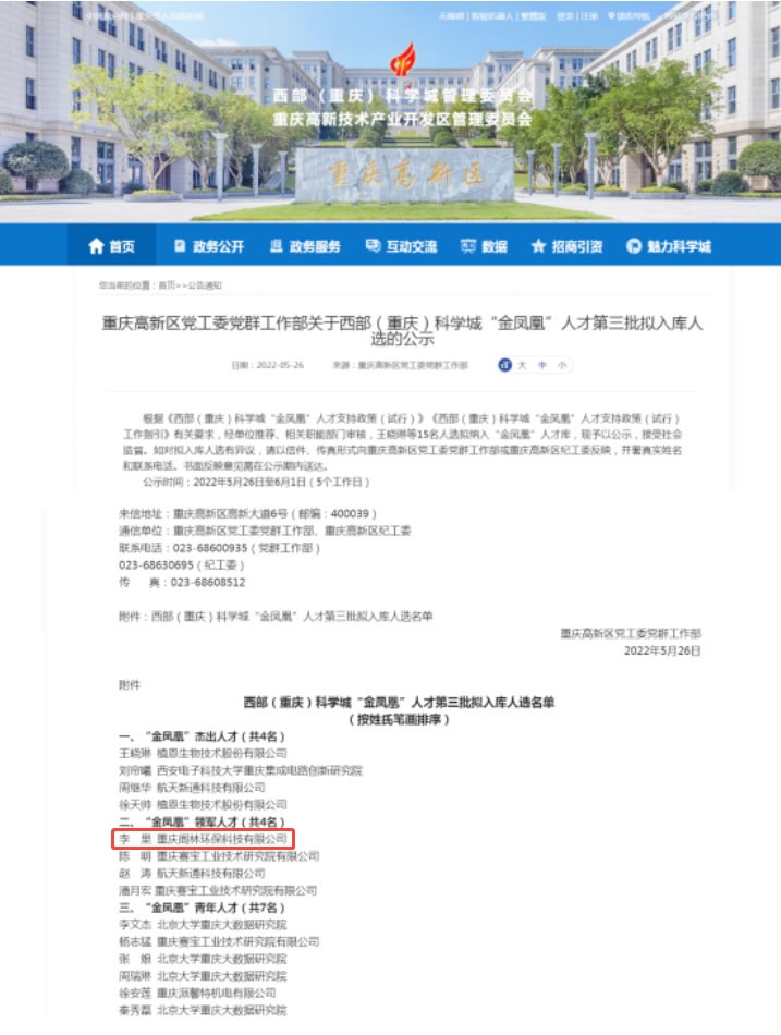 重慶閣林環(huán)??萍加邢薰究偨浝?mdash;李果入選第三批西部(重慶)科學城“金鳳凰”人才庫。李果總經理是重慶大學環(huán)境工程博士后,正高級工程師,注冊公用設備(給水排水)工程師。李果博士曾在國家住建部水專項辦借調工作,在水專項辦工作期間看到了科研院所技術產業(yè)化應用的巨大市場,博士畢業(yè)后放棄高薪工作,組織成立產學研平臺公司-重慶閣林環(huán)??萍加邢薰荆瑢W⒂诋a學研用,從單純理論研究向市場化推廣應用轉變。先后承擔國家重點研發(fā)計劃課題、國家水專項等國家級課題3項,省部級課題10余項,獲授權專利30余項,發(fā)表論文20余篇,參與編制地方標準和技術導則3項,主持示范工程設計、建設100余項,規(guī)?;茝V了自主研發(fā)的村鎮(zhèn)污水處理智能高效懸浮填料MBBR一體化設備、自適用SaBR污水處理一體化設備、預處理一體化設備等;獲得華夏科技進步特等獎1項、重慶市科技進步一等獎1項;獲評住房城鄉(xiāng)建設部“十一五”建筑節(jié)能與科技創(chuàng)新先進個人,重慶英才計劃(創(chuàng)新領軍人才);重慶市海綿城市建設專家委員會成員,重慶市城鎮(zhèn)污水處理技術裝備創(chuàng)新戰(zhàn)略聯(lián)盟副理事長,重慶大學建筑規(guī)劃設計研究總院長江分院院長。組建了環(huán)保領域內一支理論扎實、實踐豐富、勇于探索的高水平服務團隊,在業(yè)界獲廣泛好評。