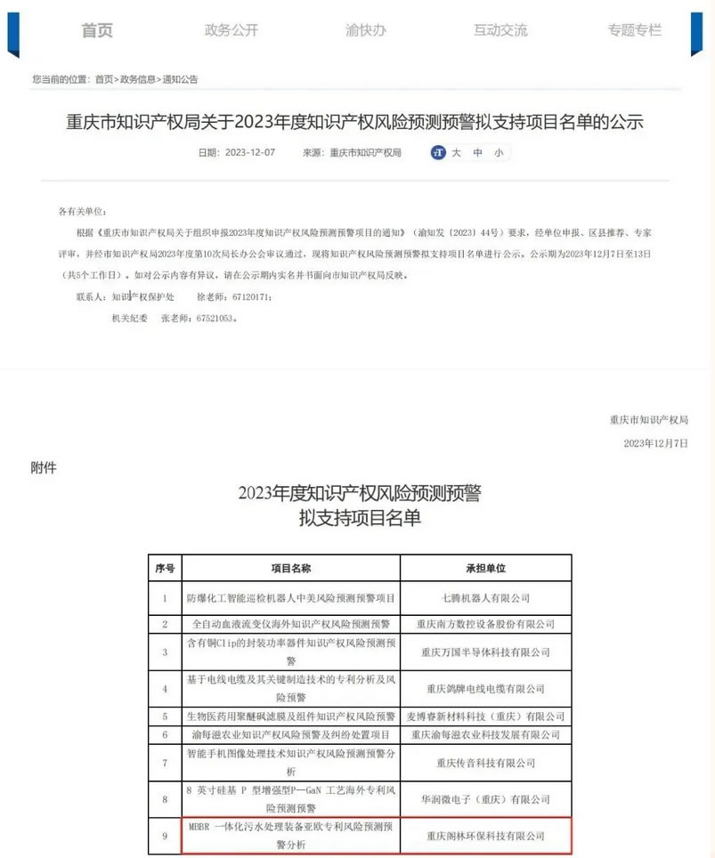 知識產權作為科技創(chuàng)新型企業(yè)的核心資產,不僅決定了企業(yè)的價值與發(fā)展前途,更是衡量一家企業(yè)科創(chuàng)含量的關鍵因素。本次《MBBR一體化污水處理裝備亞歐專利風險預測預警分析》項目獲得立項支持,是對我司長期以來聚焦污水低碳治理及資源化領域,開展技術研究、工程示范、專利群組布局、構建企業(yè)核心技術護城河的肯定!未來,我司將繼續(xù)圍繞重點創(chuàng)新產品、關鍵技術、競爭對手、重點市場等開展知識產權風險預警,識別重大知識產權風險,提供風險規(guī)避與應對指引,增強我司創(chuàng)新優(yōu)勢和專利競爭實力,助推公司高質量發(fā)展。