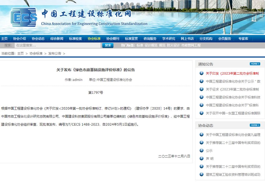 根據(jù)中國工程建設(shè)標(biāo)準(zhǔn)化協(xié)會《關(guān)于印發(fā)<2020年第一批協(xié)會標(biāo)準(zhǔn)制訂、修訂計(jì)劃的通知》(建標(biāo)協(xié)字(2020) 14號)的要求,由中國市政工程華北設(shè)計(jì)研究總院有限公司、中國建設(shè)科技集團(tuán)股份有限公司牽頭,重慶閣林環(huán)??萍加邢薰镜葐挝粎⑴c編制的《綠色市政基礎(chǔ)設(shè)施評價(jià)標(biāo)準(zhǔn)》,經(jīng)中國工程建設(shè)標(biāo)準(zhǔn)化協(xié)會組織審查,現(xiàn)批準(zhǔn)發(fā)布,編號為T/CECS 1488-2023,自2024年5月1日起施行。