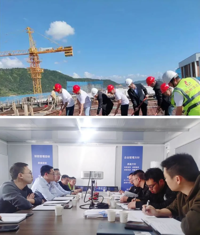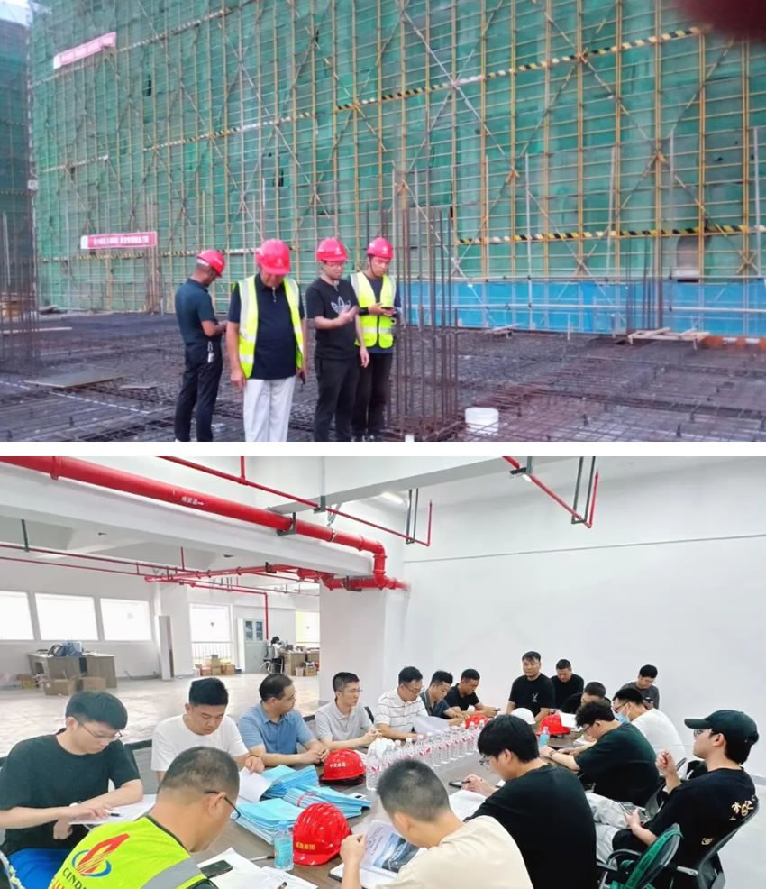 在項(xiàng)目主體結(jié)構(gòu)施工期間,正值高溫、汛期、多雨、臺(tái)風(fēng)季節(jié),工地現(xiàn)場危險(xiǎn)性較大的分部分項(xiàng)工程交叉作業(yè)頻繁。項(xiàng)目團(tuán)隊(duì)堅(jiān)持每周生產(chǎn)例會(huì),每日晨會(huì)制度,嚴(yán)格執(zhí)行有限空間作業(yè)審批、動(dòng)火作業(yè)審批及工人三級(jí)安全教育,確保工程質(zhì)量與工人安全。項(xiàng)目部還堅(jiān)持參加監(jiān)理例會(huì),提前計(jì)劃、提前組織,確保專項(xiàng)方案提前審批,進(jìn)度計(jì)劃落實(shí)執(zhí)行。
