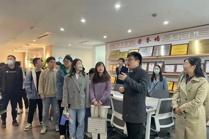 公司總經(jīng)理李果學長帶領師生參觀公司辦公環(huán)境,介紹公司發(fā)展歷程
