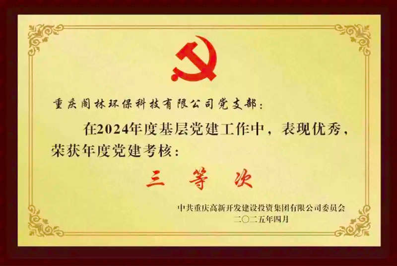 2025年4月29日,重慶高新開發(fā)集團(tuán)黨委召開2025年度非公黨建工作聯(lián)席會(huì)。會(huì)上通報(bào)了2024年度非公黨建考核結(jié)果,閣林環(huán)保黨支部在2024年度基層黨建工作中,表現(xiàn)優(yōu)秀,榮獲年度黨建考核“三等次”榮譽(yù)。