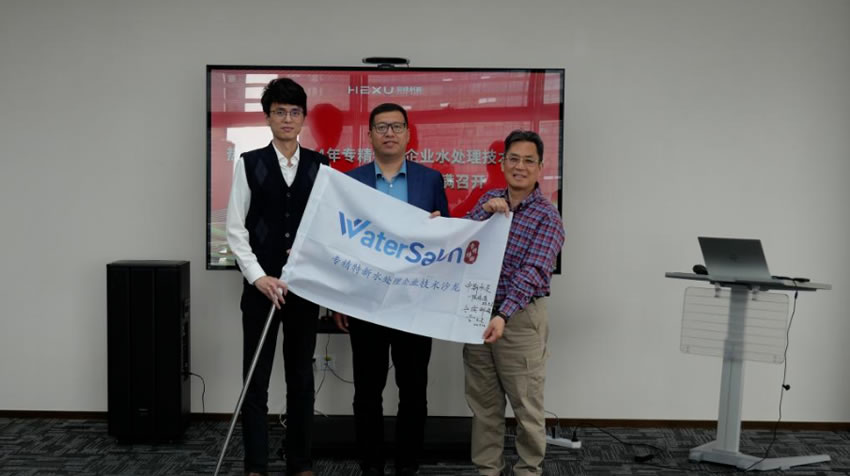 活動最后,合續(xù)科技副總裁張健民,閣林環(huán)保工藝工程師徐君,沙龍秘書長、北水教育總經(jīng)理冀廣鵬同時登臺,完成交旗儀式。