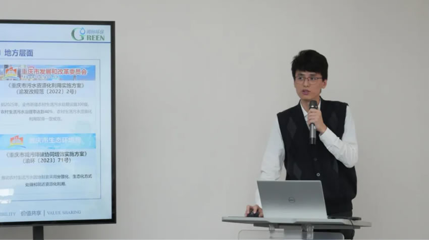 李文生首先對大家的到來表示熱烈地歡迎,然后分享了他對城市污水處理后增長時代增長的特點判斷,強(qiáng)調(diào)分布式資源化利用一定是未來增長的主要方向。同時分享了農(nóng)村污水處理行業(yè)現(xiàn)狀分析和合續(xù)科技在農(nóng)村污水治理行業(yè)的發(fā)展歷程心得。他表示隨著近年來一系列政策文件、地方標(biāo)準(zhǔn)的相繼出臺,農(nóng)村污水處理行業(yè)超越了治理時代直接邁入了資源化時代。合續(xù)科技以農(nóng)村污水處理起家,經(jīng)過10余年發(fā)展,已從農(nóng)村污水處理設(shè)備供應(yīng)商走向了以污水、排水和固廢處理為主的技術(shù)產(chǎn)品化企業(yè)。