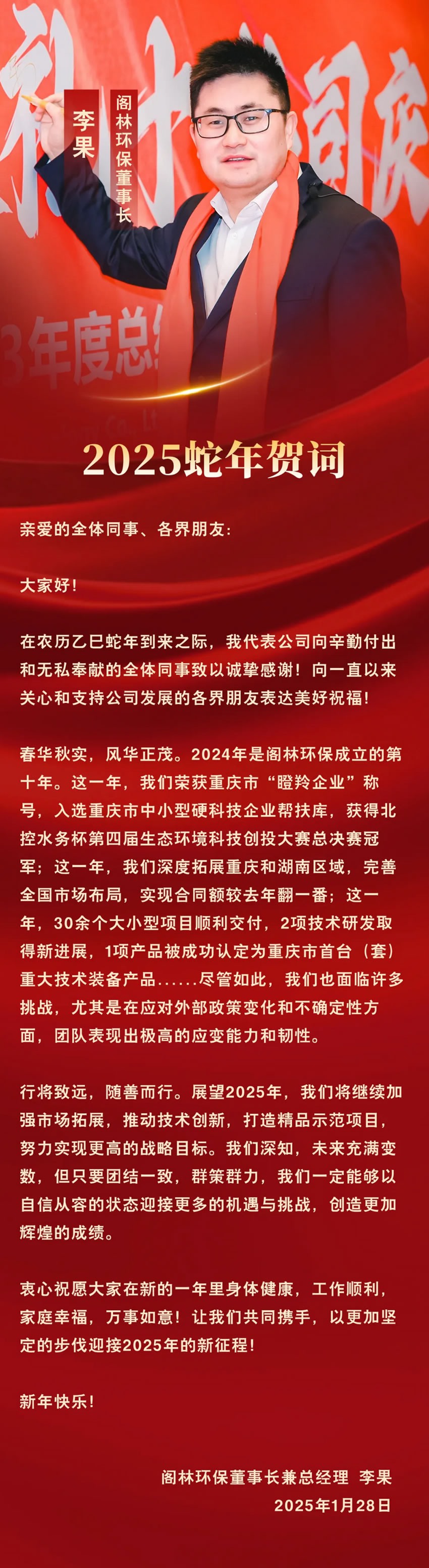 公司要聞媒體報(bào)道行業(yè)動(dòng)態(tài) 2025蛇年賀詞 | 行將致遠(yuǎn) 隨善而行 來源/作者:閣林環(huán)保 ?? 發(fā)布時(shí)間:2025-01-28 ?? 瀏覽次數(shù): 上一篇:內(nèi)推有獎(jiǎng) | 2025年社會(huì)招聘 更多新聞 清水潤(rùn)心·關(guān)愛同行 | 我司前往桐梓縣高橋鎮(zhèn)青杠村開展關(guān)懷留守兒童公益活動(dòng) 新聞快訊?|?芯視界(北京)科技有限公司到訪閣林環(huán)保,攜手重慶大學(xué)環(huán)境與生態(tài)學(xué)院,三方共筑"感知-治理"一體化環(huán)保新生態(tài) 新聞快訊?|?重慶市湖南商會(huì)蒞臨我司考察交流 融非遺匠心于綠水青山 | 我司與重慶高新區(qū)金鳳鎮(zhèn)聯(lián)合舉辦“水資源保護(hù)宣講&漆扇手作”主題活動(dòng)